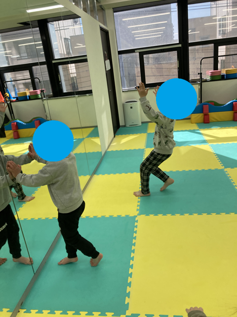 ひかりぎスタジオ朝霞には大きな大きな鏡があります。その鏡のお陰で発達支援室が倍の大きさに見えるんです!!
