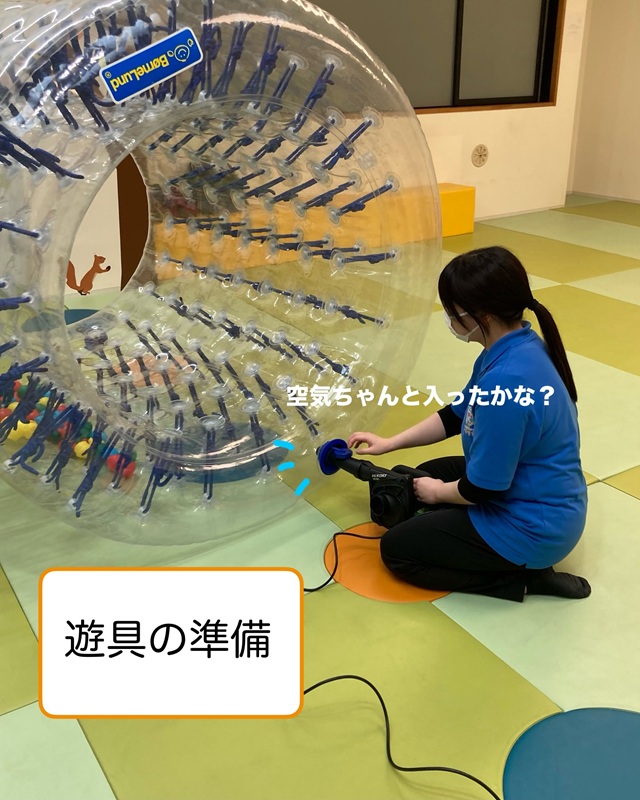 事業所によって使用するものが違いますが、ひかりぎ朝霞台のパーク(児童発達支援)には大型遊具があり、ブロアーで空気を入れることもあります。