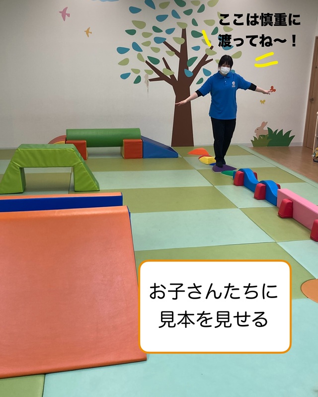 活動内容の提示から、ルール説明、やり方の手本を見せます。