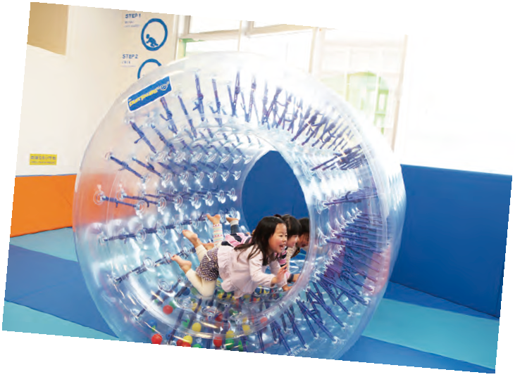 運動の得意、不得意に関係なく全身で動きを感じ取ることができます。日常で体験することが少ない「揺れる・まわる」体験は、両足だけでなく、全身をつかってバランスをとることにつながり、感覚の統合を促します。