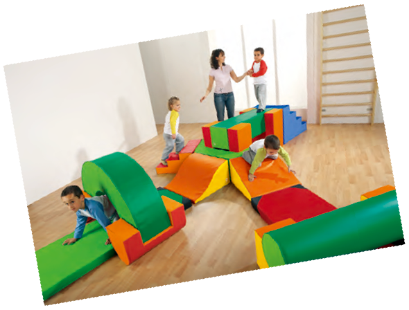 子どもが登っても変形せず、アクティブなあそびを促す、からだサイズのソフトブロック。他の子ども達と協力して遊ぶことで、コミュニケーションを促します。